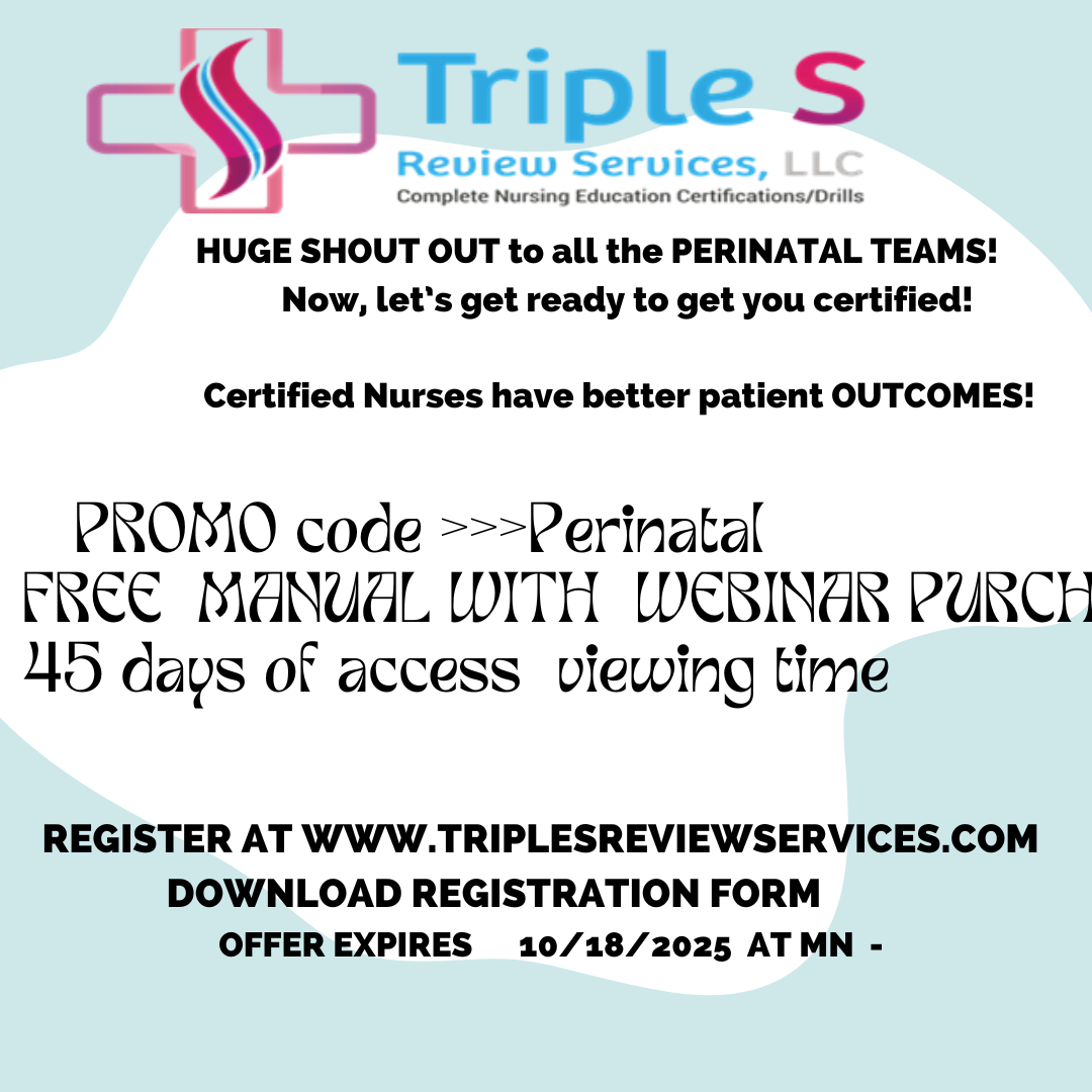 PROMO CODE: PERINATAL>> free manual with webinar purchase and 45 days of access viewing time. Offer ends 10/18/2025 at 2359 Central time. COME ON!